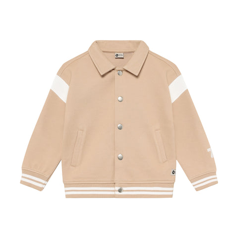 With its soft latte hue, classic polo collar, and easy button-up closure, this jacket is made for little adventurers with big style. The two handy front pockets are perfect for storing tiny treasures while exploring the world in comfort and charm.